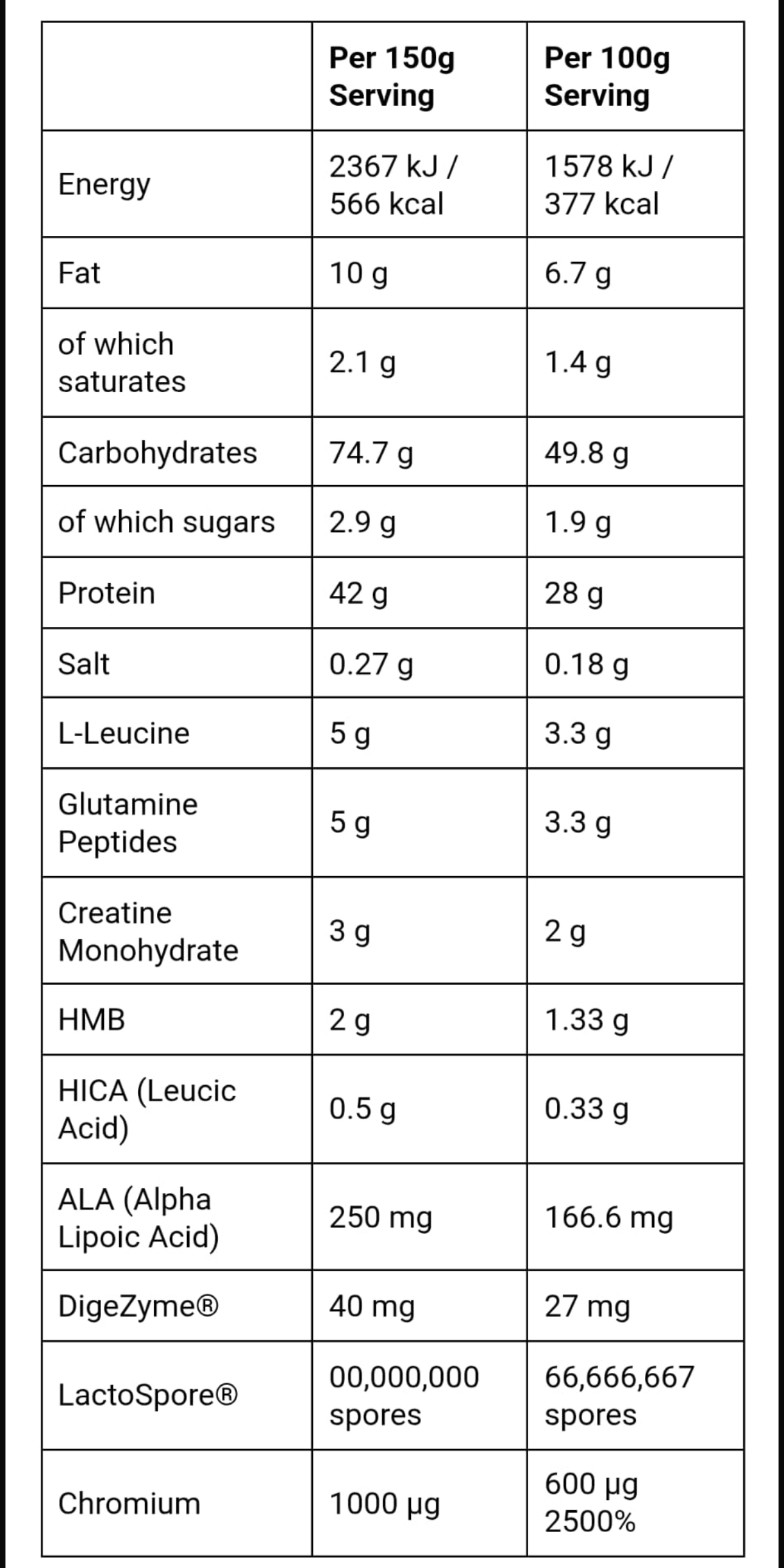 Added HMB, Glutamine, Leucine & Creatine Matrix. Added Fats: CLA & MCT Powder.