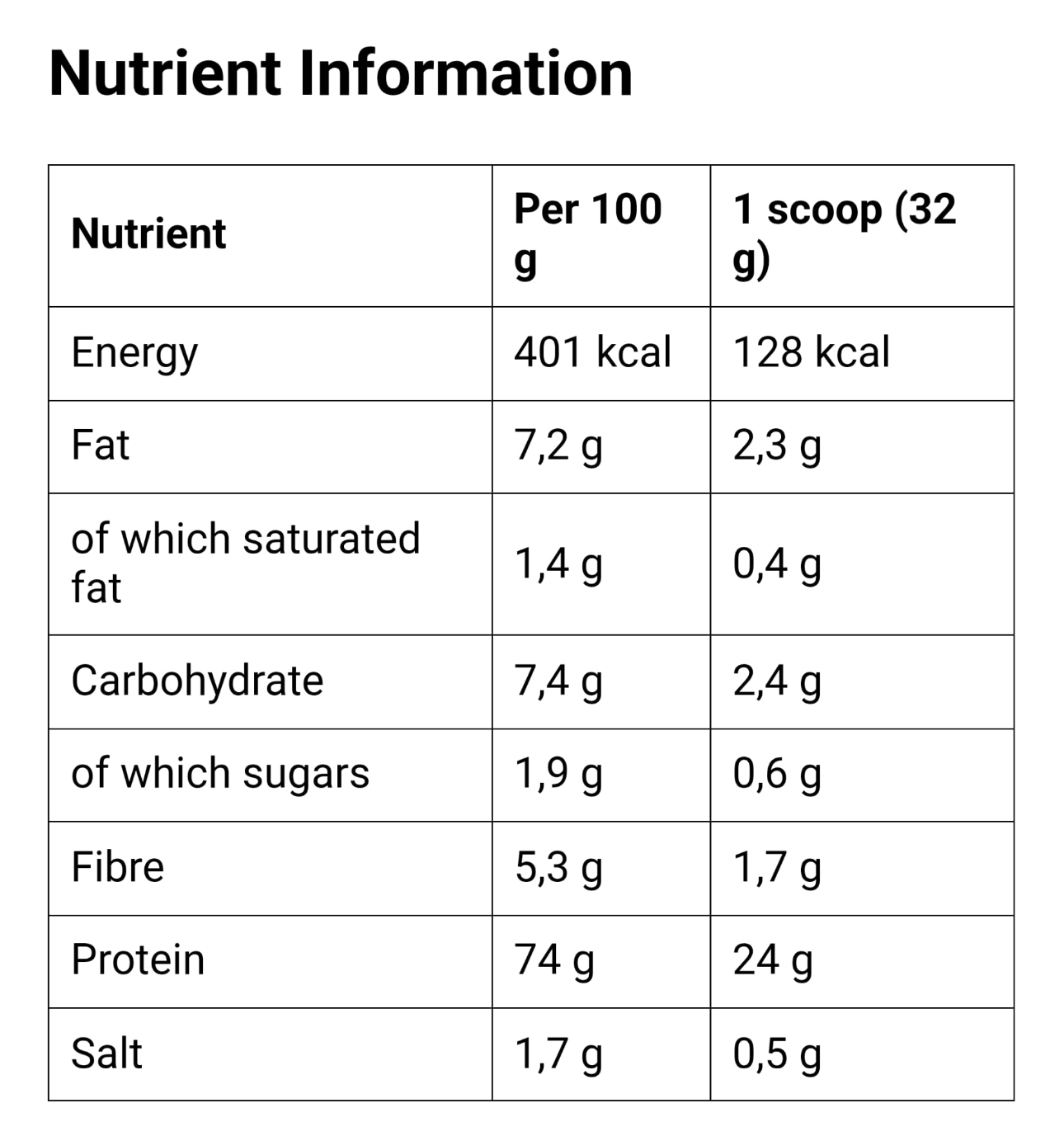 Add 36 g (~1 rounded scoop) to 300 ml of cold water and mix. You can also add a serving to smoothies, protein balls, muffins, porridge or other meals as another great way to get a protein hit in the kitchen.