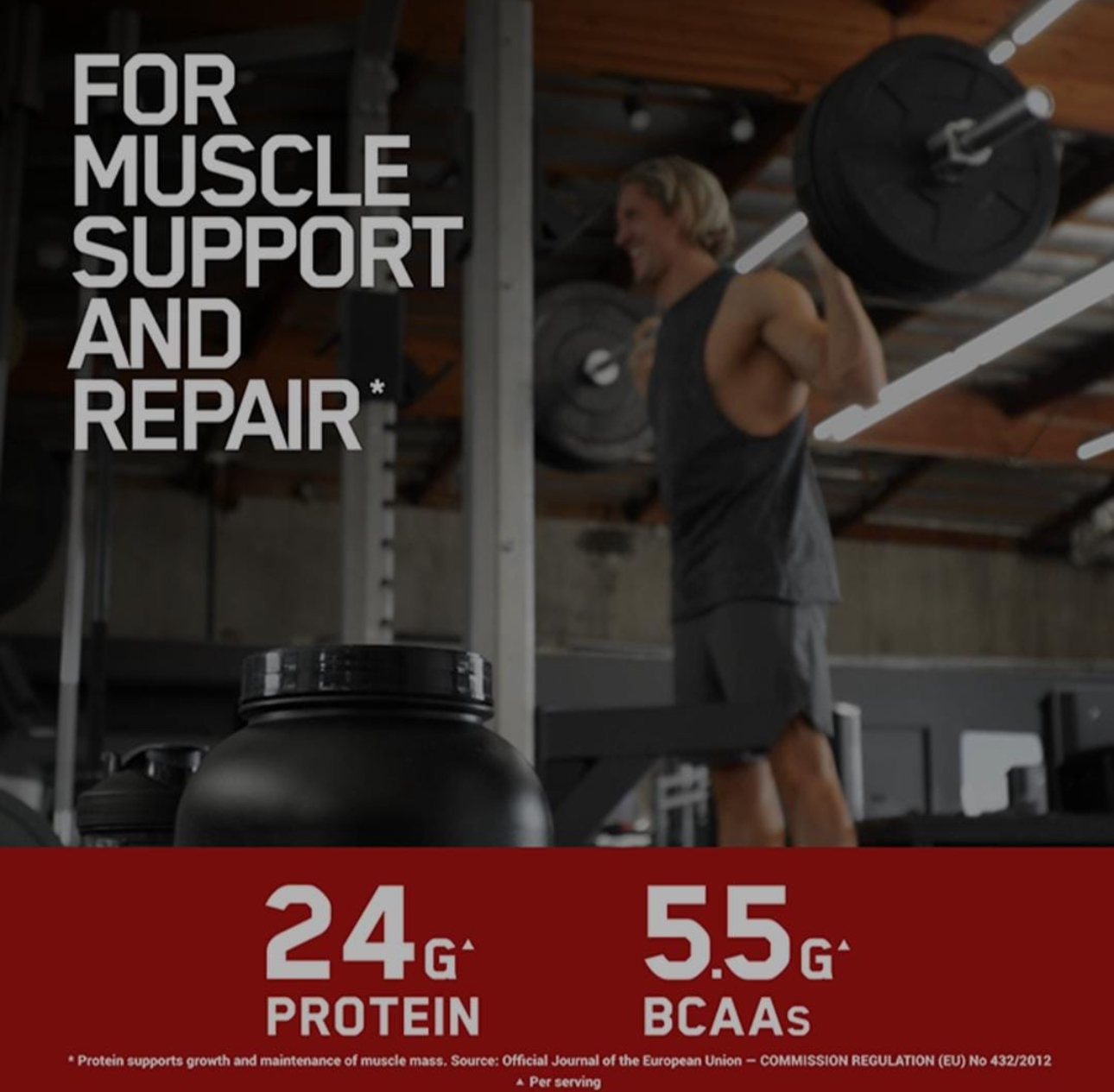 OPTIMUM NUTRITION has been trusted to provide the highest quality in post-workout recovery, pre-workout energy, and on-the-go sports nutrition products for over 30 years and in 90+ countries worldwide. We hold ourselves to the highest production standards, all so you can unlock your body’s full potential. Optimum Nutrition’s GOLD STANDARD 100% WHEYTM is the world’s best-selling whey protein. It delivers 24 g of whey protein to support muscle growth. After training, your body uses protein to help repair and rebuild muscle fibres.
