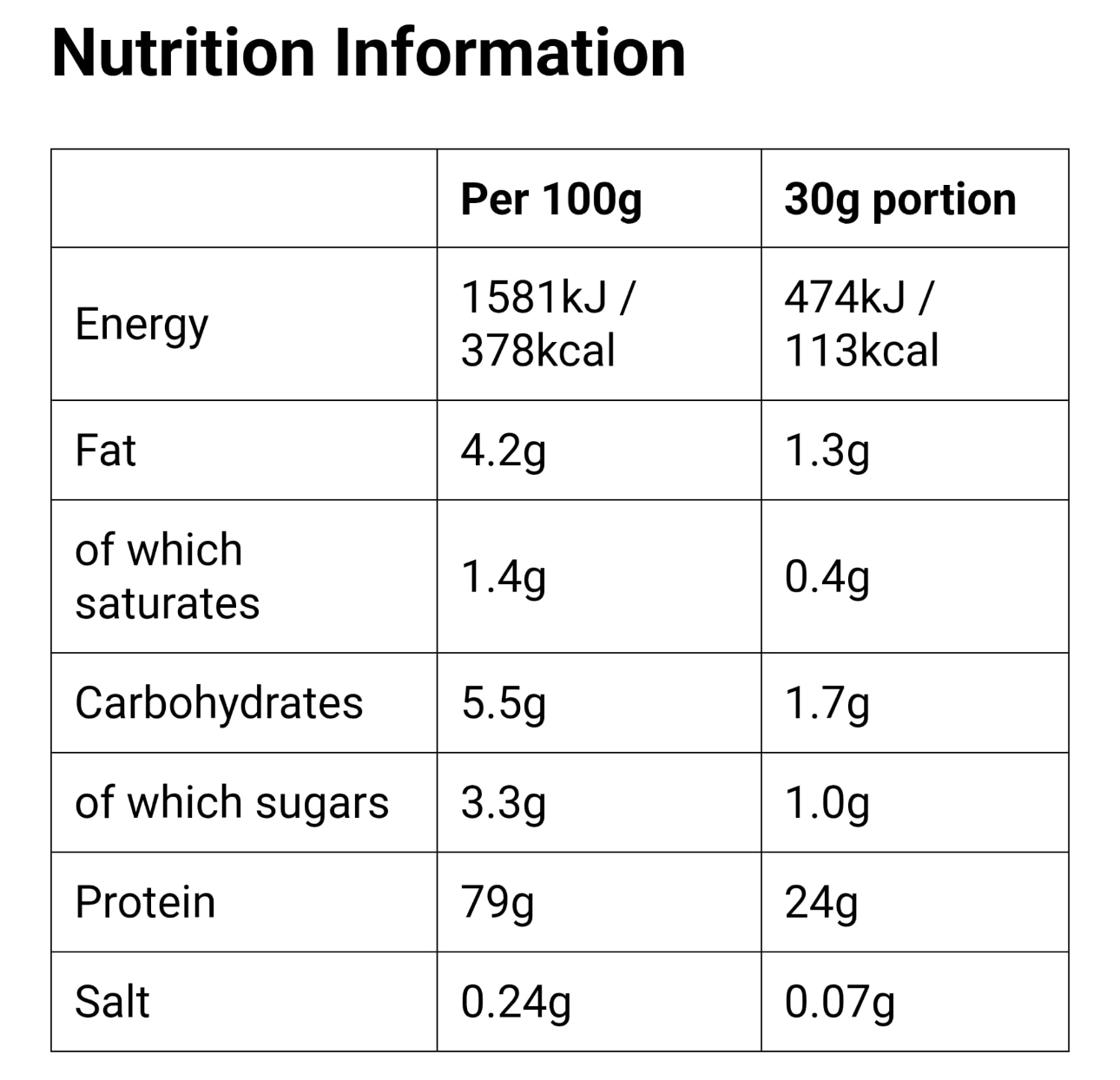 Each great tasting serving contains 24 g of premium whey protein to support muscle growth and 5.5 g of naturally occurring BCAAs. All with just 1.3 g of fat, 1g of sugars, and with 1.7 g of carbs.