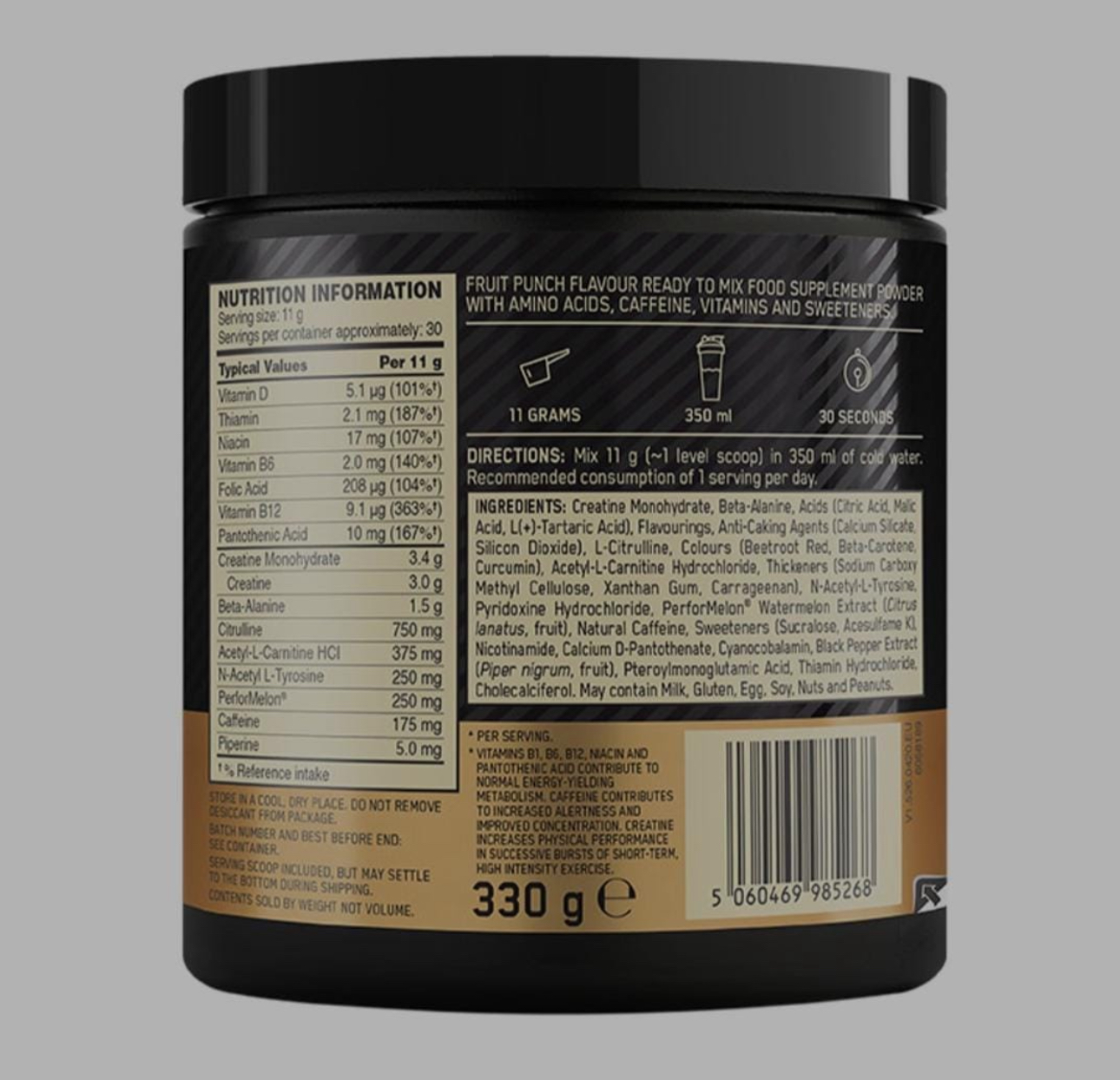 Optimum Nutrition also includes foundational ingredients; CarnoSyn®️ Beta-Alanine, Citrulline, L-Carnitine & N-Acetyl-Tyrosine which are combined to make this a Gold Standard perfectly engineered formula. This formula has also raised the bar on flavour, setting the Gold Standard for both performance and taste.