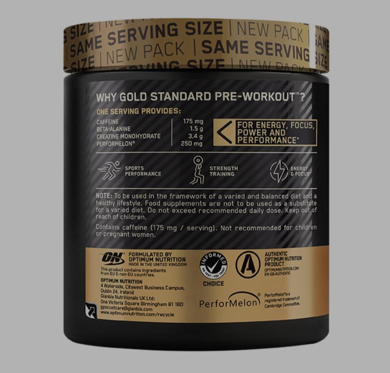 This formula provides you with the essential ingredients to achieve your true strength including 175 mg of caffeine from natural sources to help increase alertness and focus in the gym. Gold Standard Pre-Workout is made with premium ingredients including creatine for power & increased physical performance in successive bursts of short term, high intensity activity and vitamins B1, B3, B5, B6 and B12 which all contribute to normal energy yielding.