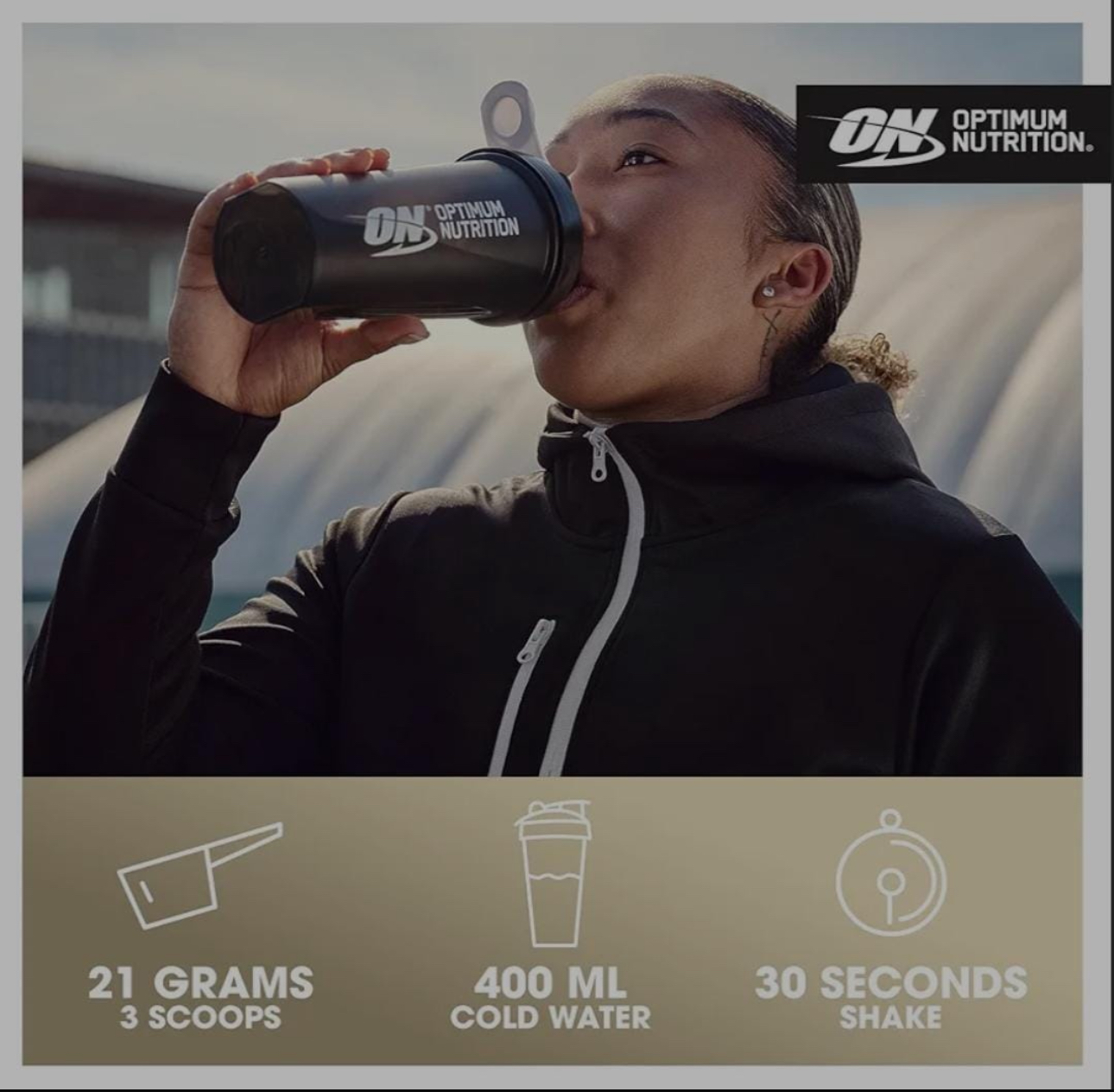 Mix three scoops (21-grams) of Optimum Nutrition's Advanced Gold Standard Pre-Workout with 400ml of cold water. It's recommended to consume 15-45 minutes before your workout or activity.