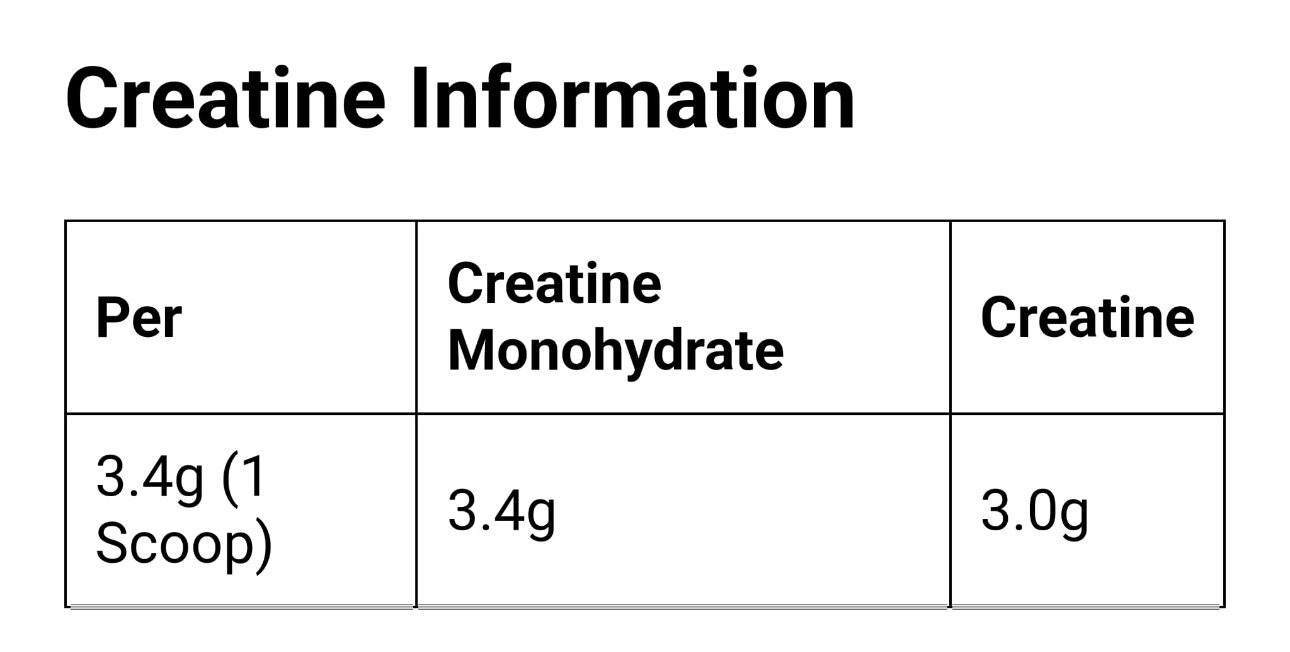 3.4 g of pure Creatine Monohydrate to increase muscle power
