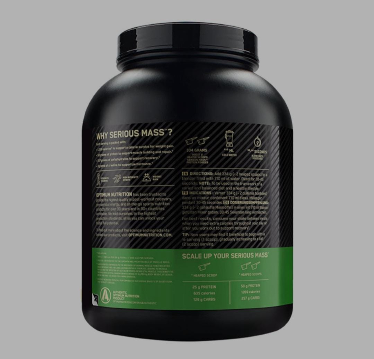 Serious weight gain requires serious calories. Optimum Nutrition Serious Mass is the ultimate weight gain formula.