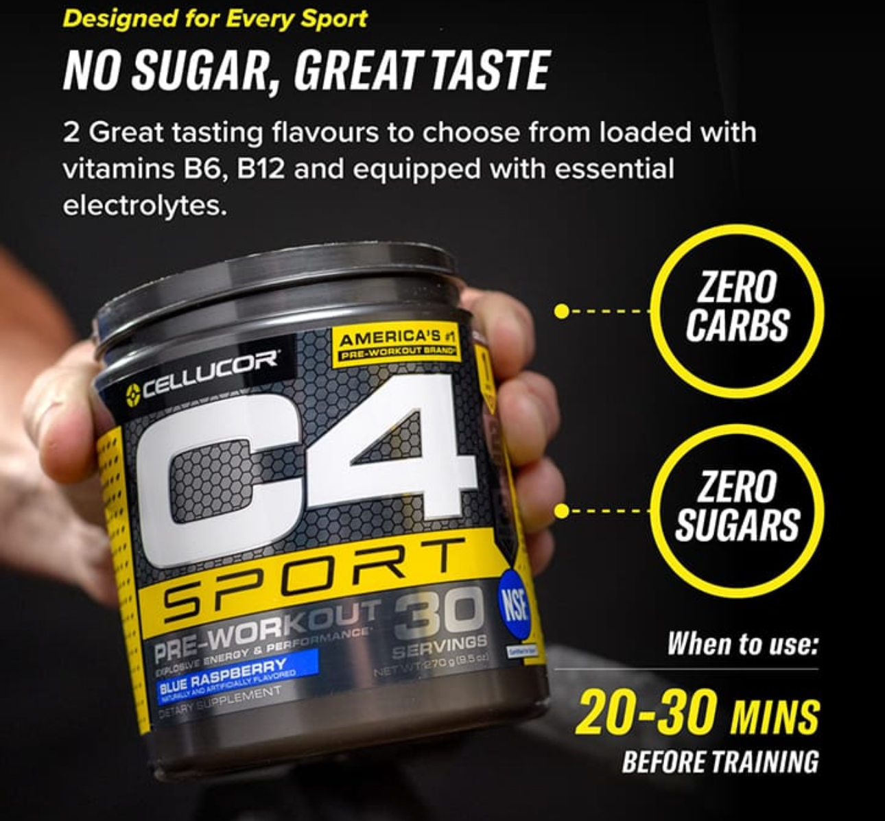 C4 Sport provides a performance boost that helps you in your journey towards becoming the best. C4 Sport includes sodium electrolytes and 135mg of caffeine in every serving. This product supports energy and performance for workouts of all types of trainees.