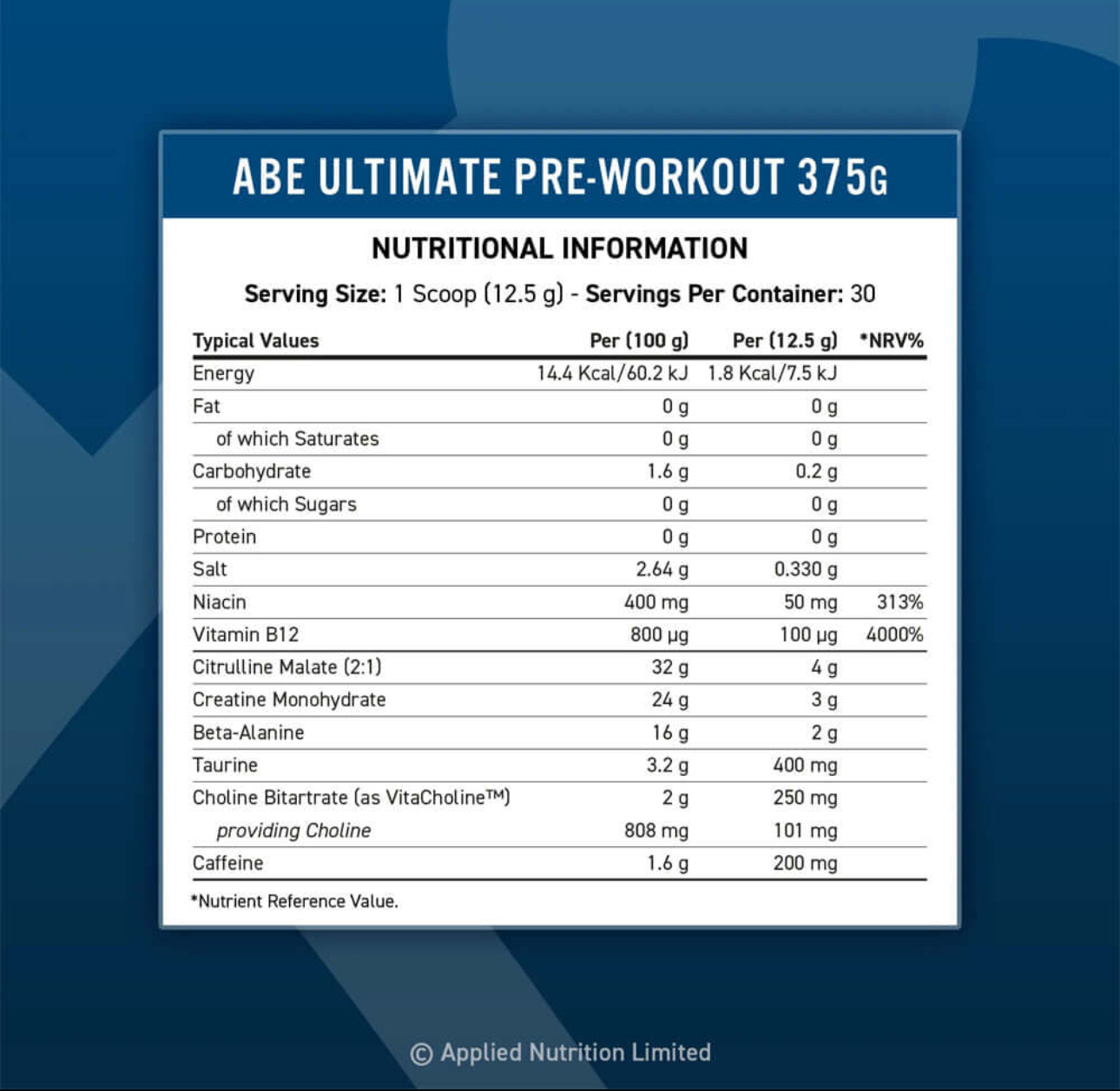 Step up your training intensity with ABE Pre Workout, the ultimate formula designed to maximise your performance and help you smash your fitness goals. ABE is meticulously crafted with a powerful blend of research-backed ingredients, including Creatine, Beta-Alanine, Citrulline Malate, and a potent hit of caffeine. This synergistic matrix is engineered to ignite your focus, boost your energy levels, and enhance muscular endurance, allowing you to push past your perceived limits and achieve new personal bests.